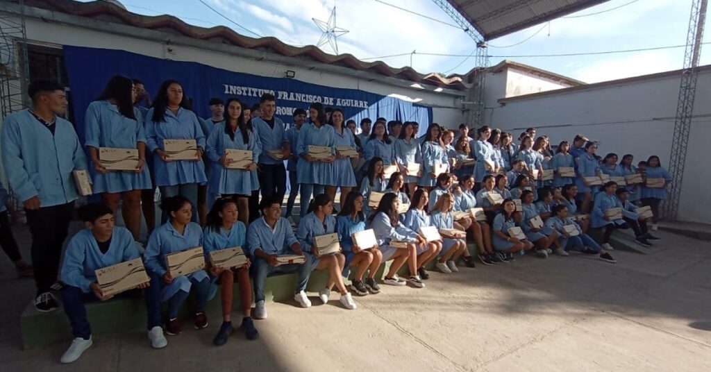 Un total de 89 alumnos de las cuatro divisiones de 5° año, pertenecientes a las orientaciones Economía y Gestión de las Organizaciones y Humanidades y Ciencias Sociales del Instituto Francisco de Aguirre recibieron las tablets del programa Metas Digitales que impulsa el Gobierno de la provincia.