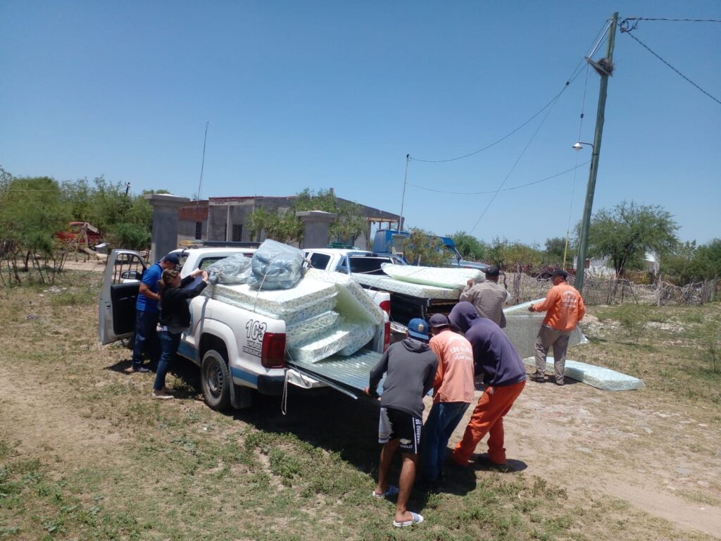 De esta manera se realizó la distribución de chapas, camas, colchones, frazadas y de alimentos no perecederos para una docena de familias.