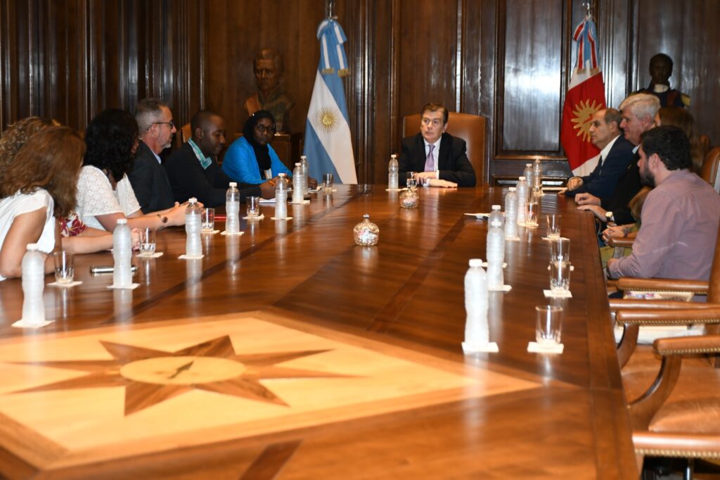 El gobernador Gerardo Zamora recibió en el Salón de Acuerdos de Casa de Gobierno la visita de la directora nacional de Ganadería de Kenia, Halima Nenkari, y al representante del Instituto de Investigación en Agricultura y Ganadería de ese país africano, Bosko Kidake.