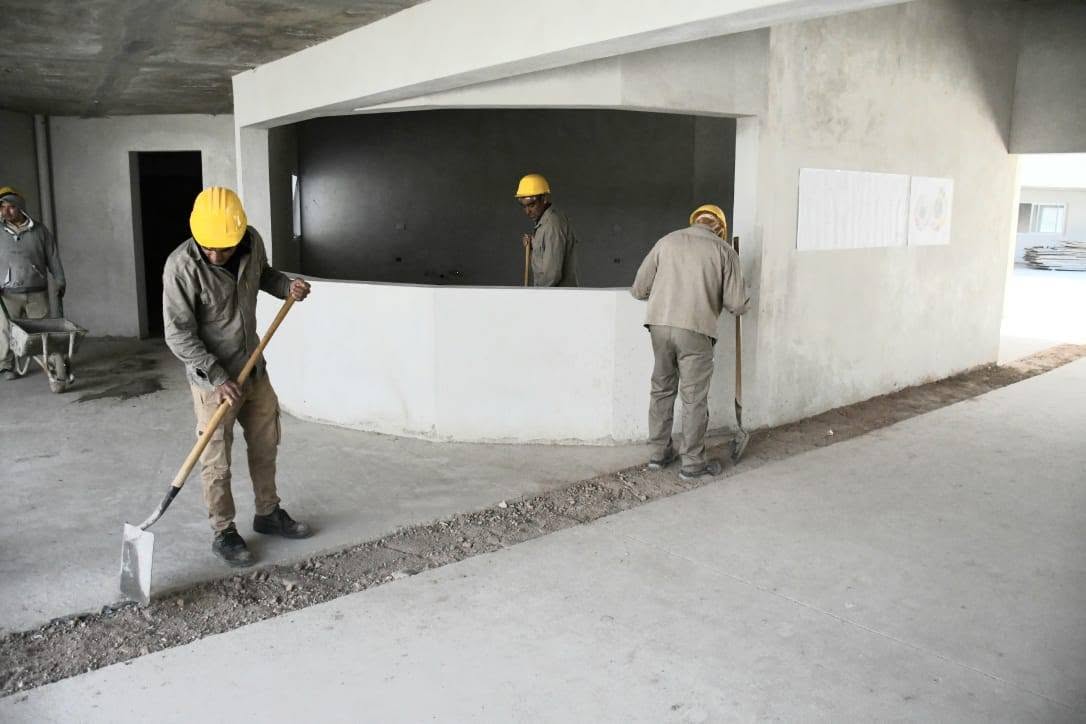 El secretario de Gobierno, Néstor Machado; el secretario de Planeamiento, Obras y Servicios Públicos, Jorge Vila; la subsecretaria de Educación, Nancy Bravo y la directora de Educación, Josefina Muratore; inspeccionaron el progreso de la imponente obra ubicada entre las calles Perito Moreno, Colón, Franklin Moyano y Santa María Magdalena.