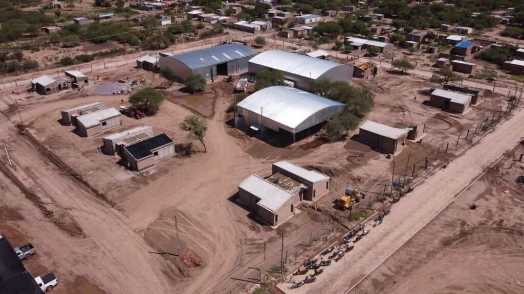 Este ambicioso proyecto que ya está en ejecución y en etapa avanzada, contempla la construcción de 20 viviendas; polideportivo con tribuna, vestuarios y bar; escuela primaria de 14 aulas, aulas taller y Salón de Usos Múltiples (SUM), área de gobierno y administración; jardín de infantes de 3 salas con salón cubierto y oficinas.