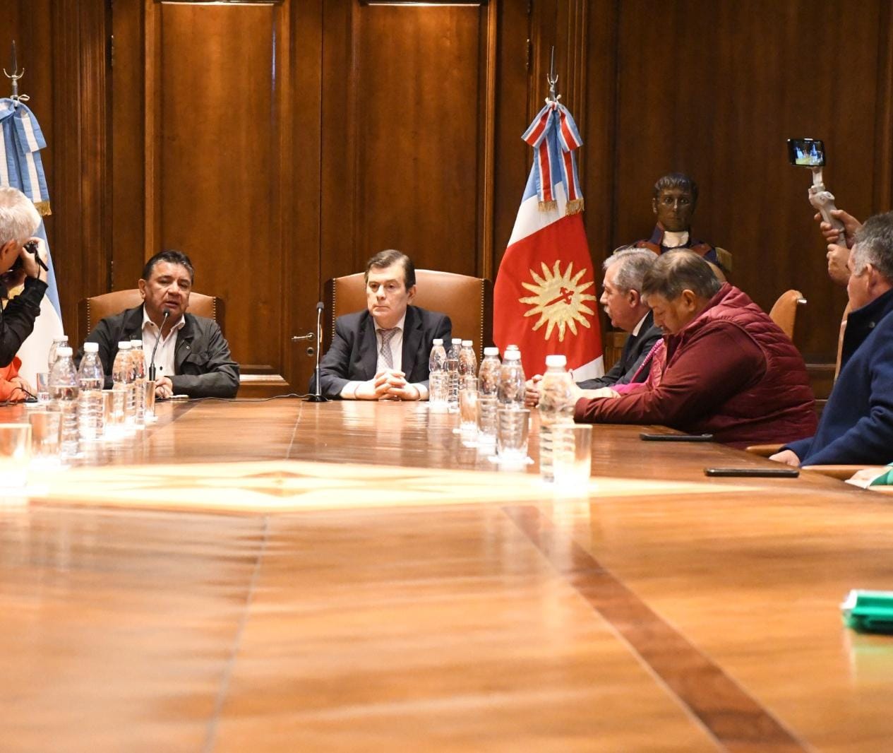 El encuentro se desarrolló en el Salón de Acuerdos de Casa de Gobierno, en el que también participaron el jefe de Gabinete de Ministros, Elías Suárez; la secretaria de Trabajo, Julia Comán; la senadora de Salta, Nora del Valle Giménez; el presidente de la CGT Regional Santiago del Estero, José Gómez, directores, secretarios y delegados de distintos puntos del país.