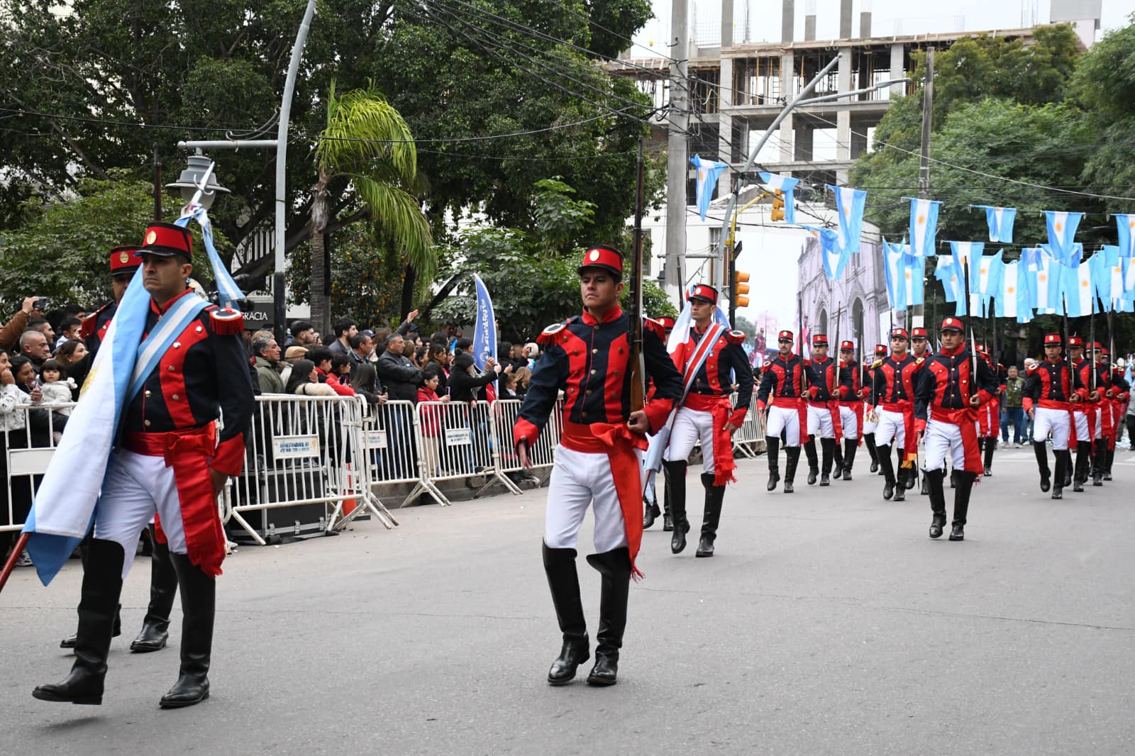 Para posterior rendir honores y dar pie al inicio del desfile Cívico Militar, del cual participaron Los Patricios Santiagueños, Escuelas de Cadetes, Liceo Policía Mixto, Escuela de Tiro, Escuela de Agentes, Instituto de Formaciones Policial, Áreas de reservas permanentes y espaciales entre ellas el Cuerpo Guardia de Infantería, Bomberos, Búsqueda y Rescate, Canes, Montada y las unidades Móviles, motorizadas y ciclísticas.
