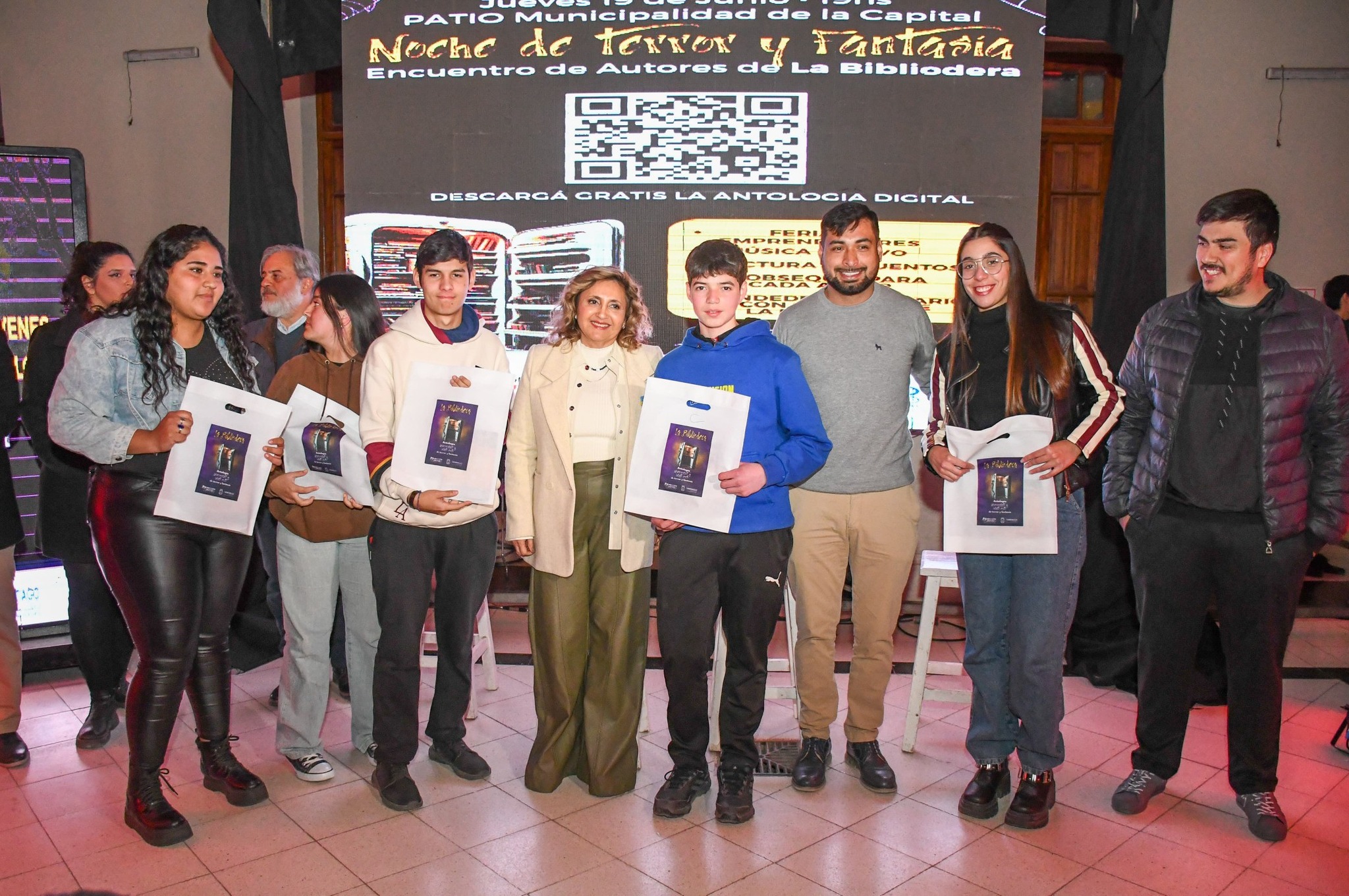 La jefa comunal comunicó las novedades durante el Encuentro de autores de la Bibliodera “Noche de terror y fantasía” 2025, que tuvo lugar en el patio central de la Municipalidad de la Capital.