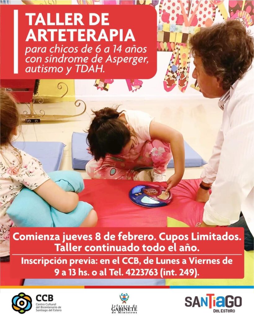 En el marco de las diversas propuestas gratuitas que ofrece el Centro Cultural del Bicentenario (CCB) durante todo el año, este jueves 8 comienza el taller de Arteterapia destinado a niños de 6 a 14 años con Síndrome de Asperger, autismo y Trastorno con Deficit de Atención e Hiperactividad (TDAH).