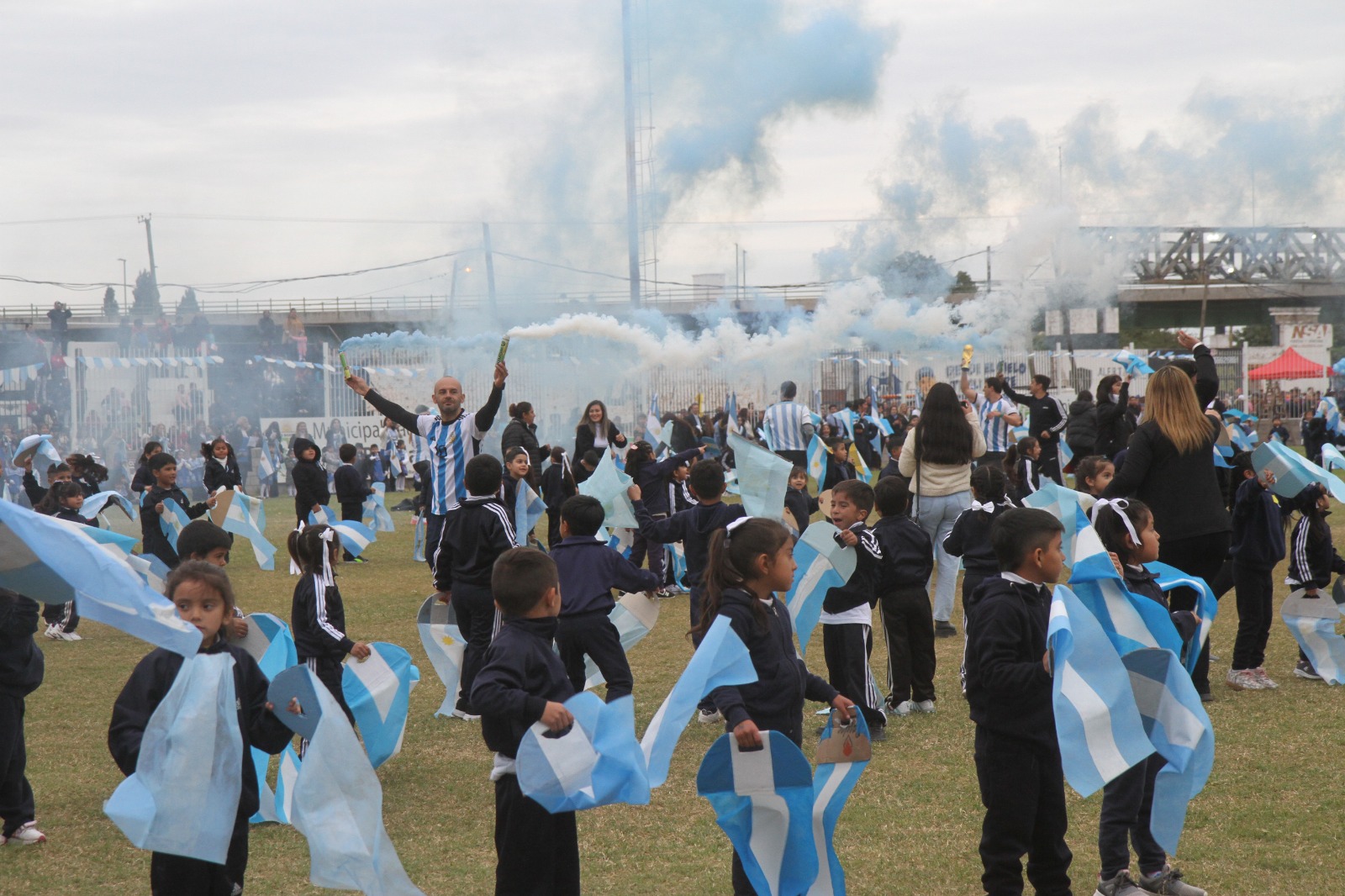 Posteriormente, el intendente Roger Nediani tomó la Promesa de Cariño a la Bandera a un centenar de niños que ansiosos esperaban el momento.