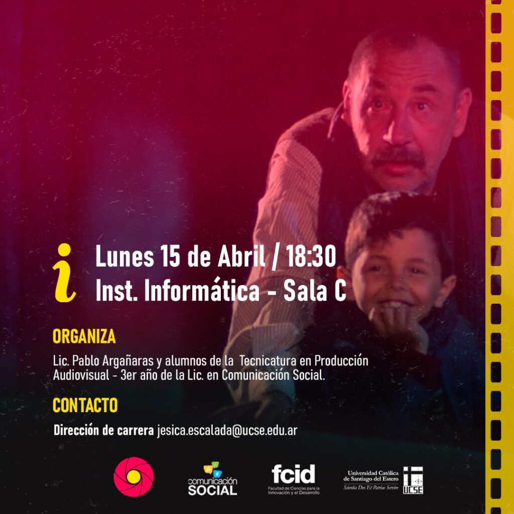 La proyección será este lunes 15 de abril a las 18:30 horas en la Sala “C” del Instituto de Informática de la Universidad Católica de Santiago del Estero.