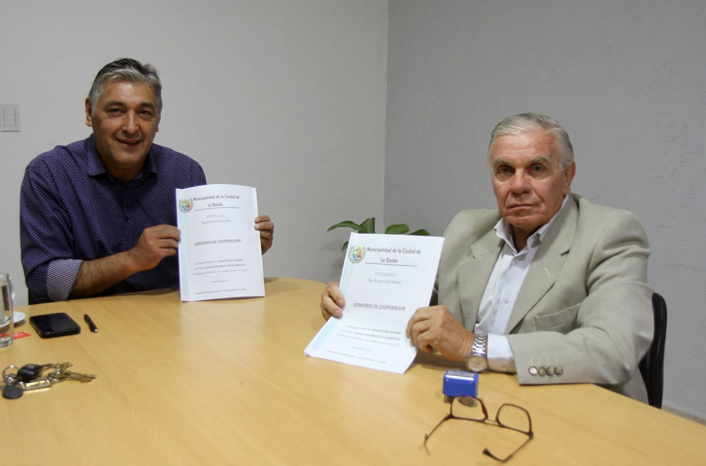 Los encargados de rubricar el acuerdo en beneficio de los bandeños, fueron el intendente local, Roger Nediani y el presidente del BASE, Carlos Olivera.