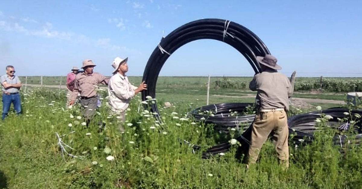 El intendente de Pinto, Jorge Leguizamon concretó la entrega de mil doscientos metros de caños de dos pulgadas que servirá para llevar agua mediante bombeo con molino desde el río Dulce hasta un tanque australiano, donde se almacena para el ganado vacuno y ovino.