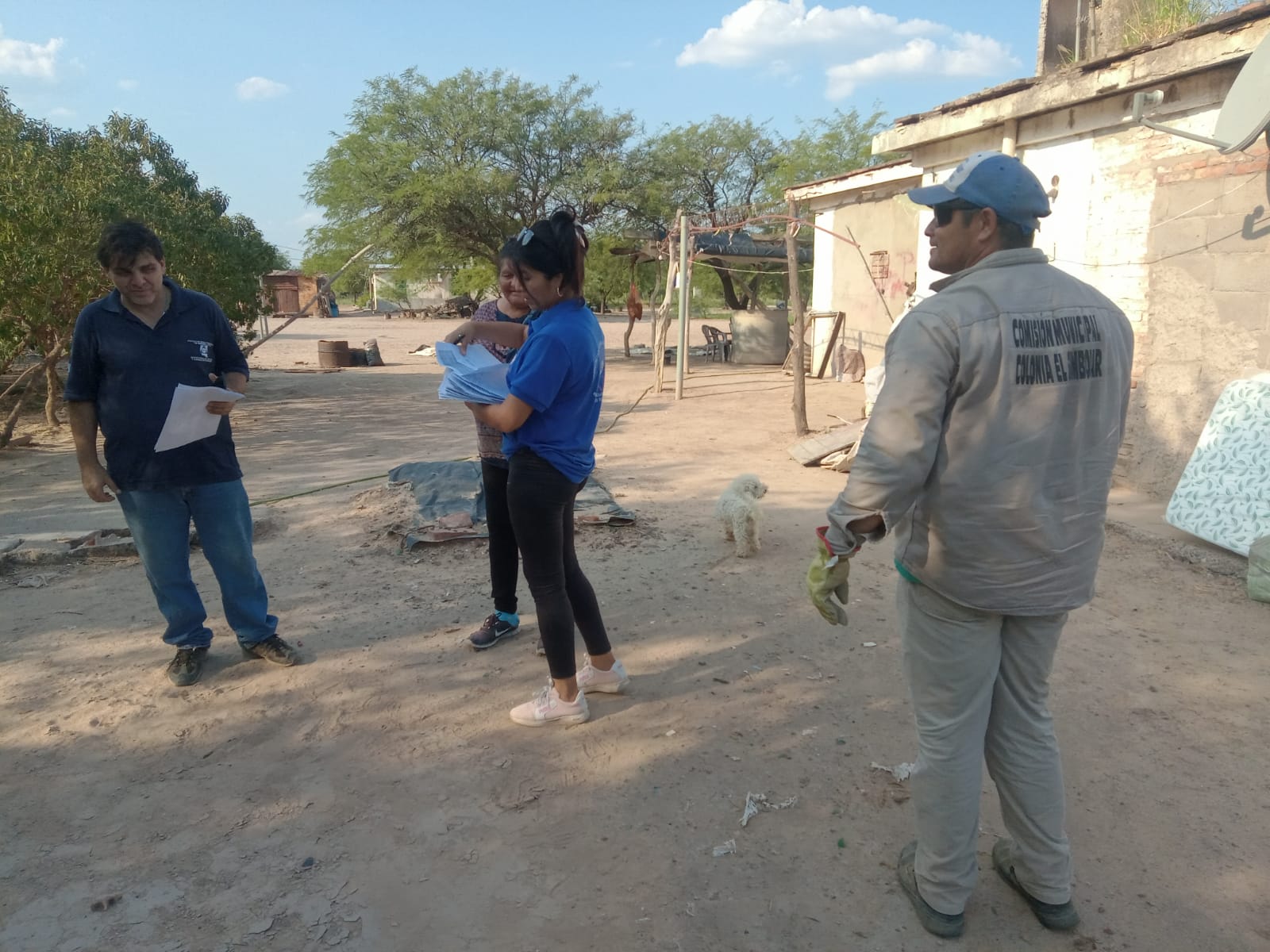 Personal de Defensa Civil de la provincia en forma conjunta con empleados de la Comisión Municipal, continúan con acciones de asistencias a familias que fueron afectadas por el fenómeno climático que azotó a Colonia El Simbolar el pasado 16 de febrero.