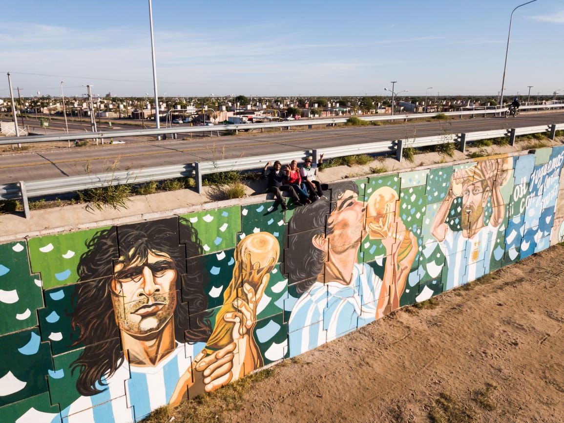 En el marco de los trabajos de restauración que realizan en un mural ubicado en el cruce de las avenidas circunvalación Ricardo Alfonsín y Leopoldo Lugones, un grupo de artistas convocó a para este viernes, de las 20 en adelante, a un fogón artístico para celebrar el Campeonato Mundial obtenido por la Selección Argentina.