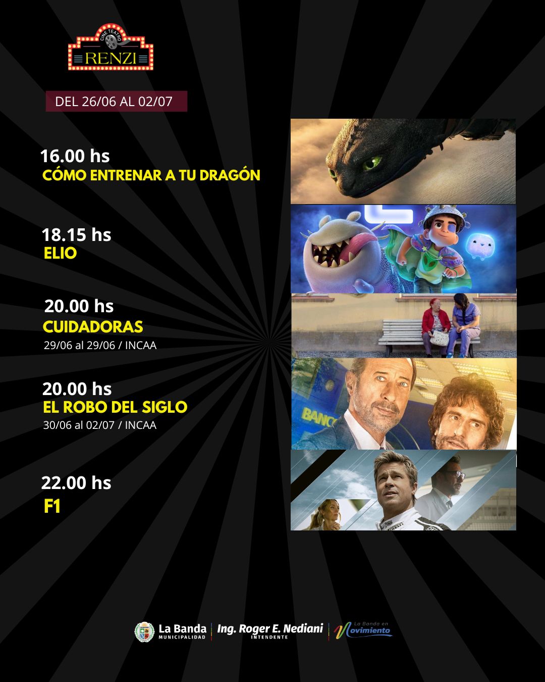 La Municipalidad de La Banda invita a la comunidad a disfrutar de la nueva cartelera en el Cine Teatro Renzi, con una programación pensada para todas las edades y gustos con un costo accesible en sus entradas y promociones que continúan vigentes.