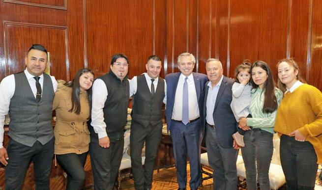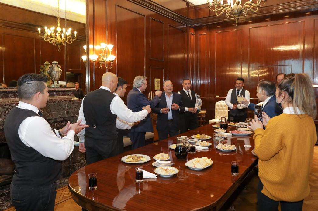 El agasajo a Carlos Aranda fue en el comedor grande que hay en Casa Rosada, donde participó el jefe de Estado; el histórico exintendente de Florencio Varela y actual diputado nacional del frente de Todos, Julio Pereyra; compañeros de Aranda y los hijos, hijas y nietos del santiagueño.