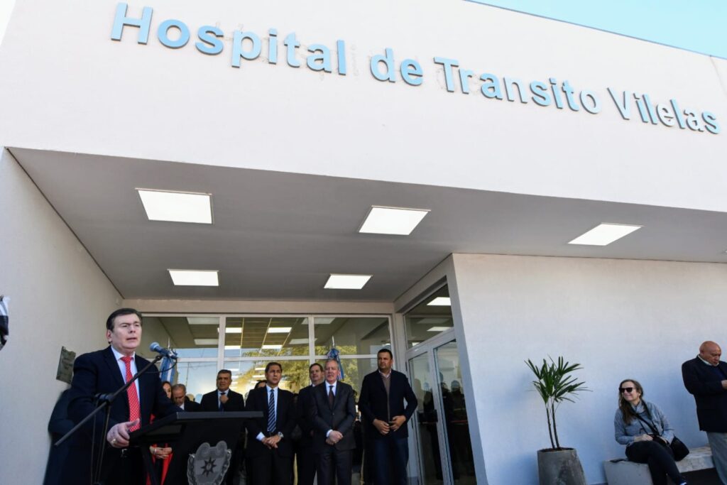 Posteriormente, el gobernador y los miembros de su gabinete se trasladaron al Hospital de Tránsito, donde fueron recibidos por la directora Mirta Mendoza, quien luego del corte de cintas participó de un recorrido por el edificio que tiene una superficie cubierta total de 550 metros cuadrados donde se encuentran recepción, sala de espera, consultorios médicos con conexión para la telemedicina y uno odontológico, shock room, sala de internación abreviada, farmacia, cocina, y espacios para el personal de guardia. Además, se hizo entrega de una Ambulancia 0km y se homenajeó al Dr. José Alejandro Guardián Campos, quien se desempeñó en ese centro y falleció durante la pandemia, imponiendo su nombre al edificio.