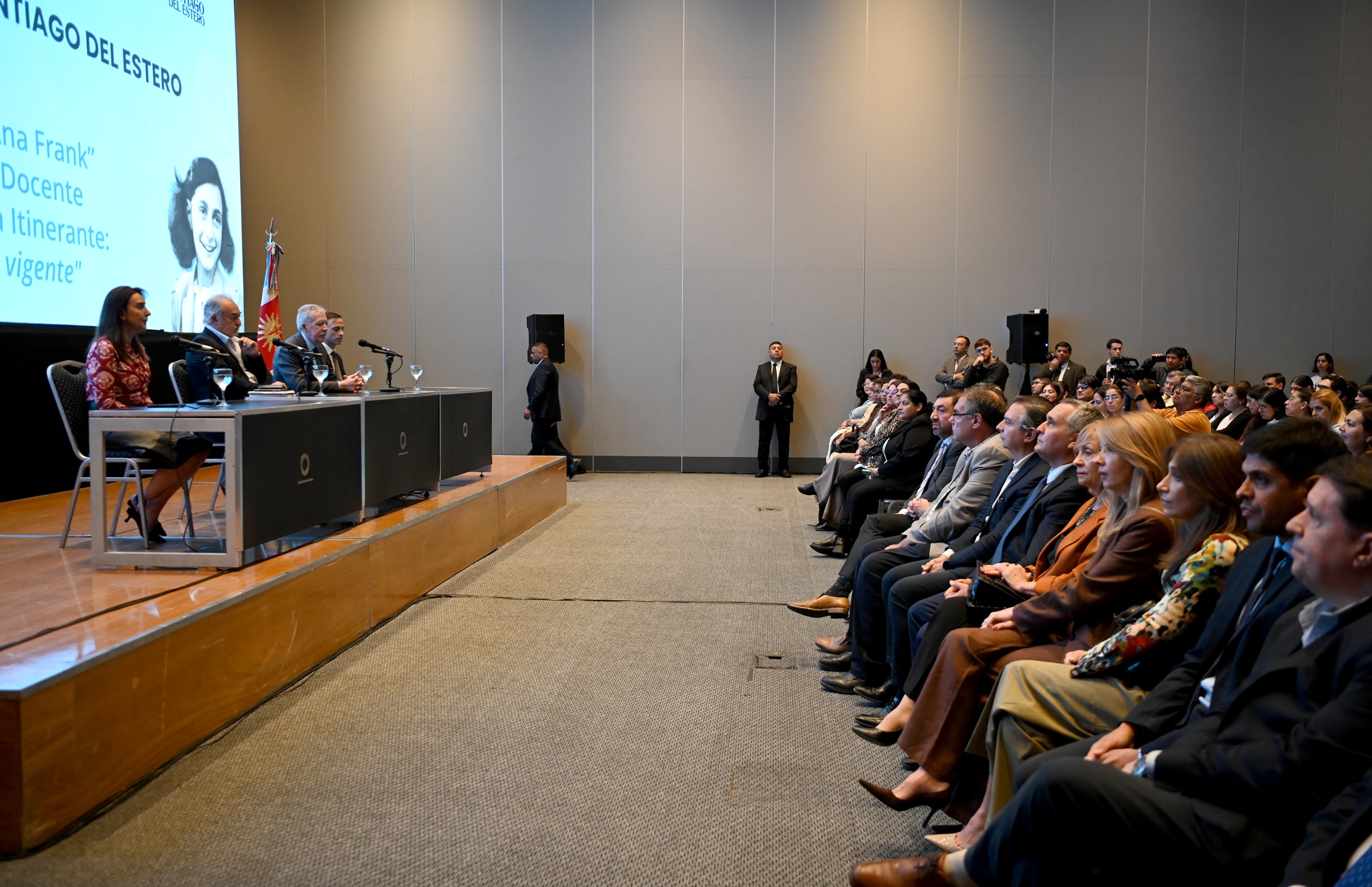 El gobernador Elías Suárez participó este martes por la mañana el acto de lanzamiento y capacitación docente de la 4° edición del Concurso de Escritura “Ana Frank una historia vigente”, que se desarrolló en el Centro de Convenciones Fórum, donde estuvo acompañando por el jefe de Gabinete, Víctor Araujo; la ministra de Educación, Mariela Nassif, y el director del Centro Ana Frank en Argentina, Héctor Shalom, entre otras autoridades e invitados.