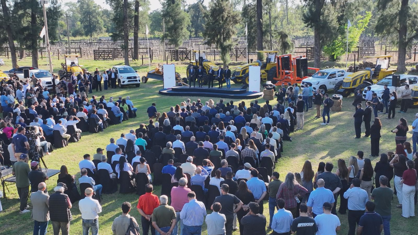 En ese marco, también se concretó la entrega de equipamiento productivo destinado a las agencias, entre los que se destacan tractores, rastras, palas de arrastre, camionetas, drones, estaciones meteorológicas, cerramientos de galpones, salas de extracción de miel, equipos láser con pala, rotoenfardadoras y enfardadoras tipo T.