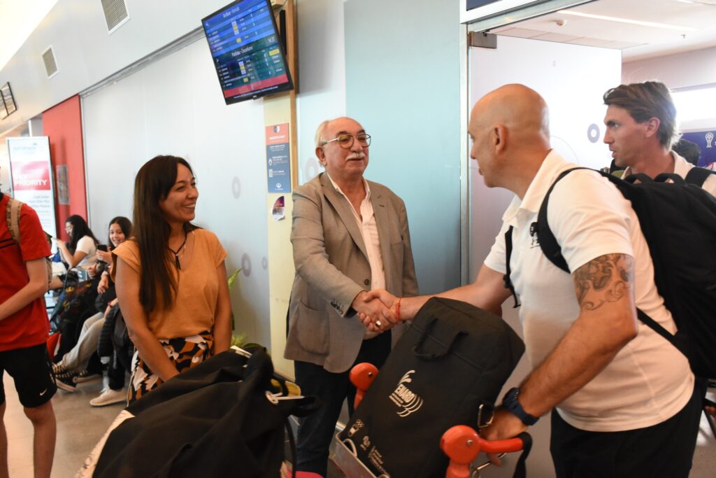 La selección fue recibida por el secretario de Deportes de la provincia, Carlos Dapello, y la directora del Estadio Provincial de Hockey, Mariana García, en el aeropuerto local.