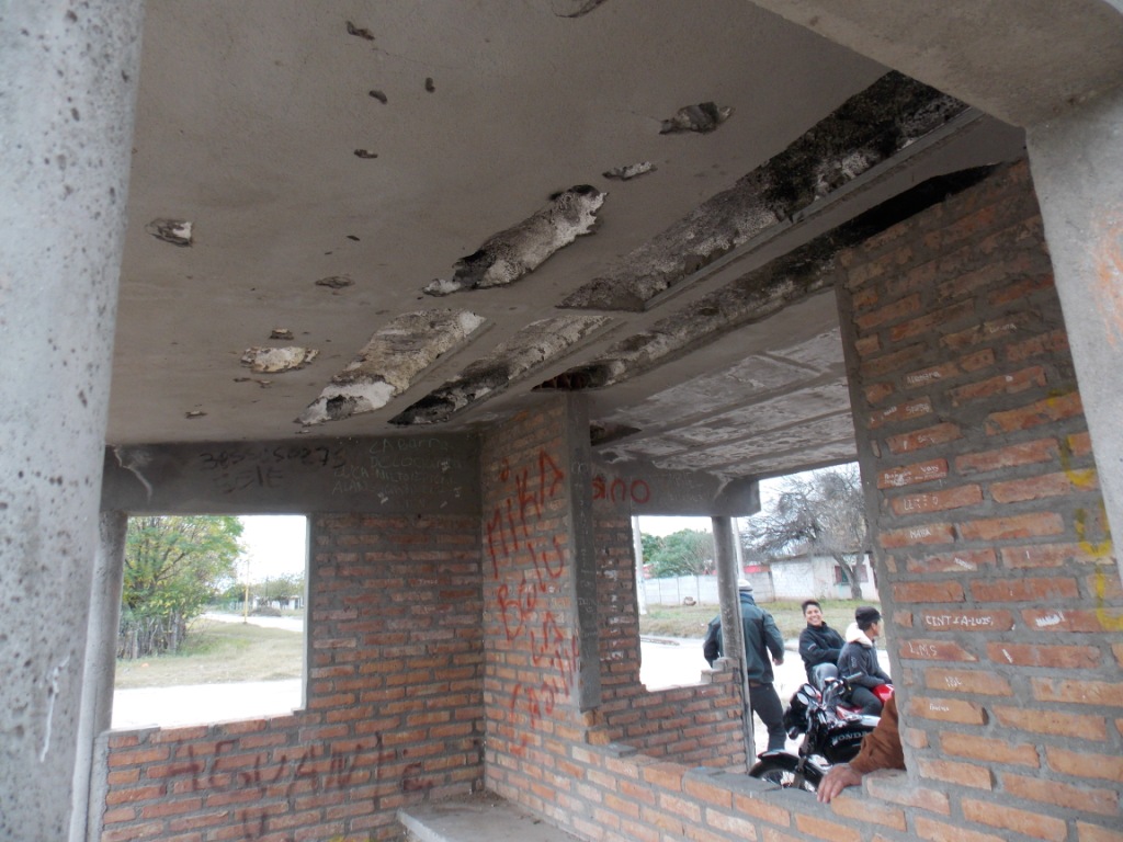 Fue construida con mampostería y techo de viguetas, pero rápidamente fue depredado por los malvivientes, que lo tomaron como refugio nocturno, donde hacen fuego y pasan horas ingiriendo bebidas y otras sustancias. El techo ya está totalmente dañado.