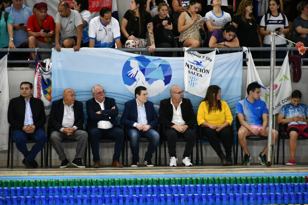 El gobernador Gerardo Zamora participó de este acto junto al secretario de Deportes y Recreación, Carlos Dapello; el presidente de la Confederación Argentina de Deportes Acuáticos, Sergio Antonini; el secretario Ejecutivo del Instituto Nacional de Promoción Turística (Inprotur), Ricardo Sosa, y la directora del Natatorio, Josefina Bandrowsky.