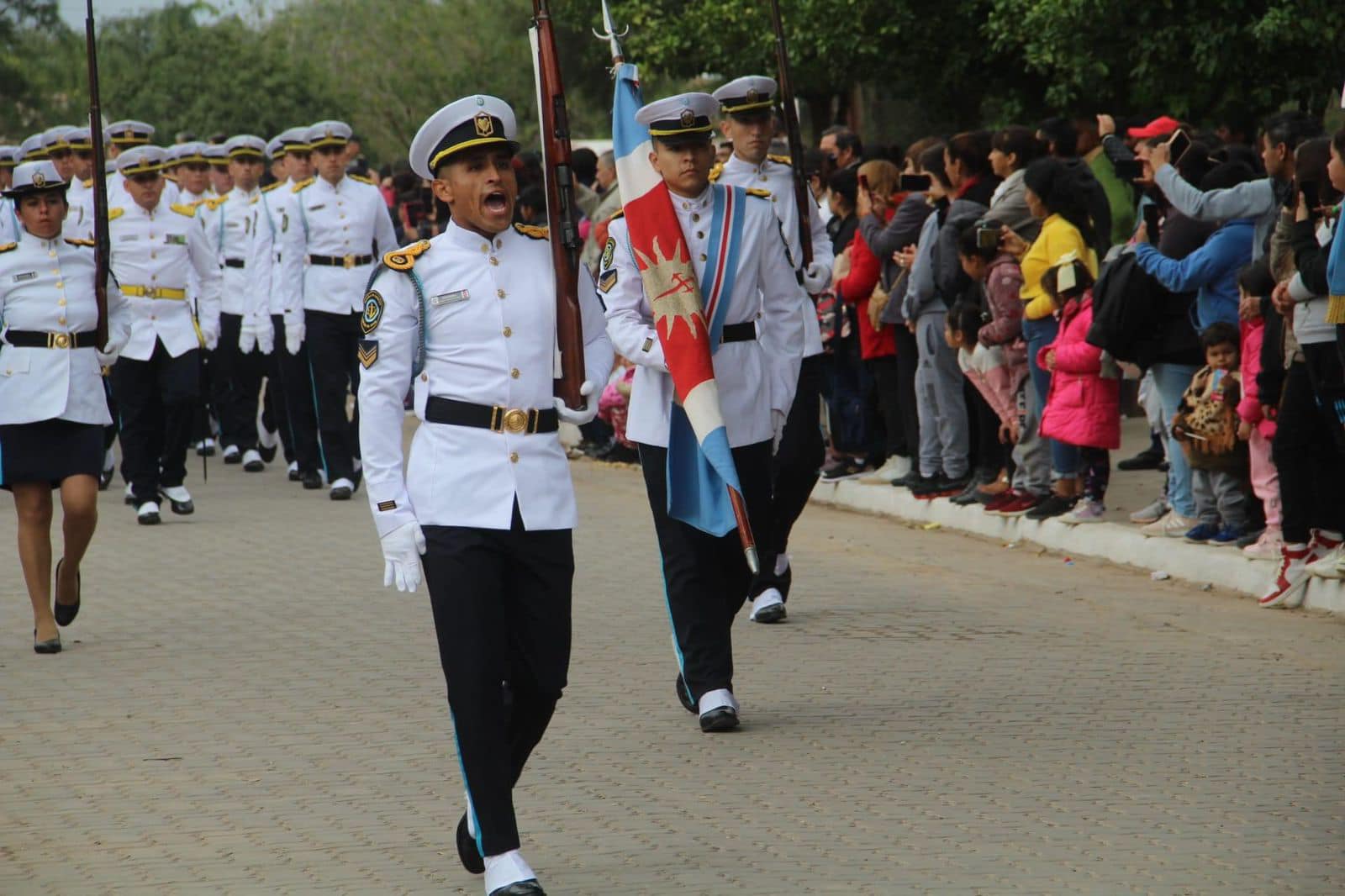 Finalizado el acto protocolar, se desarrolló el desfile cívico militar, que contó también con la participación de agrupaciones gauchas.