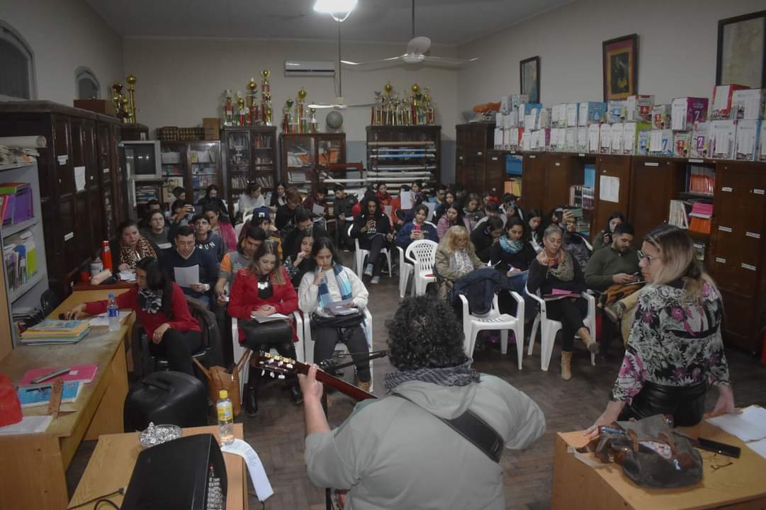 Luego, el profesor de Lengua y Literatura, Mauricio Dolores, hizo un “análisis discursivo y literario” relacionado con la música y el arte de cada período abordado en la charla-taller.