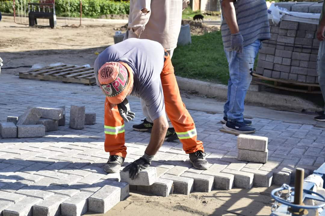 En la Plazoleta Manuel Belgrano se colocan baldosas y reparan de caminerías internas de dicho espacio público