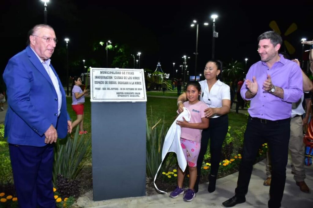 Con la presencia de familias y autoridades municipales, en la ciudad de Frías, se dejó inaugurada la “Ciudad de Los Niños”, un moderno espacio que está equipado con una diversidad de juegos infantiles, espacios verdes, caminerias, bancos e iluminación Led.