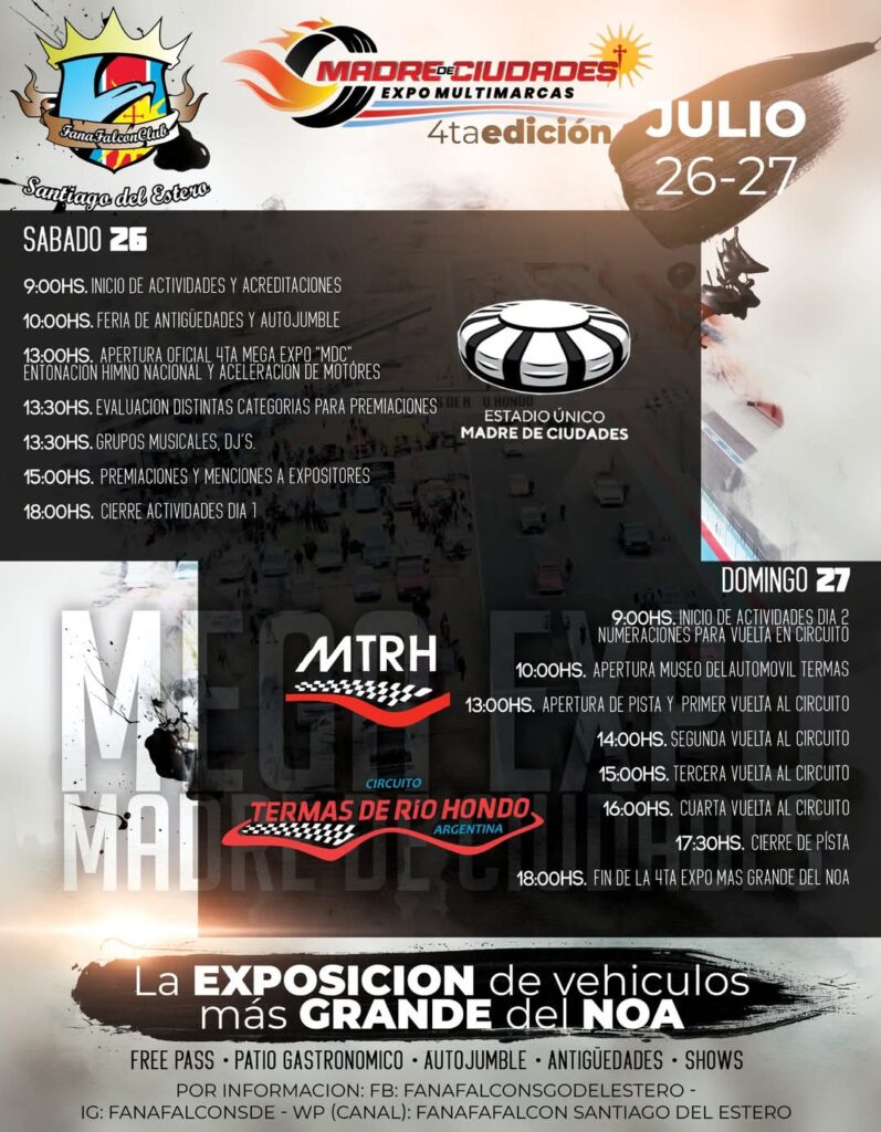En tanto, el domingo 27 de julio la locación será en el Autódromo Internacional Termas de Río Hondo, con vuelta al cicuito de 10 a 18 horas.