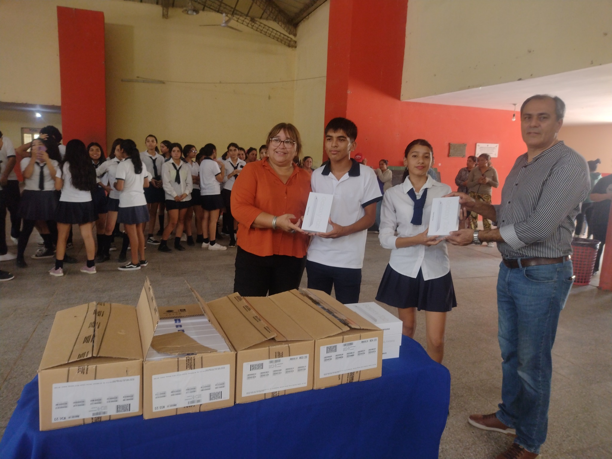Iñiguez detalló que los elementos entregados corresponden al programa provincial Metas Digitales, que prevé la entrega de estas herramientas tecnológicas a los alumnos que finalizan el secundario en todo el territorio provincial.