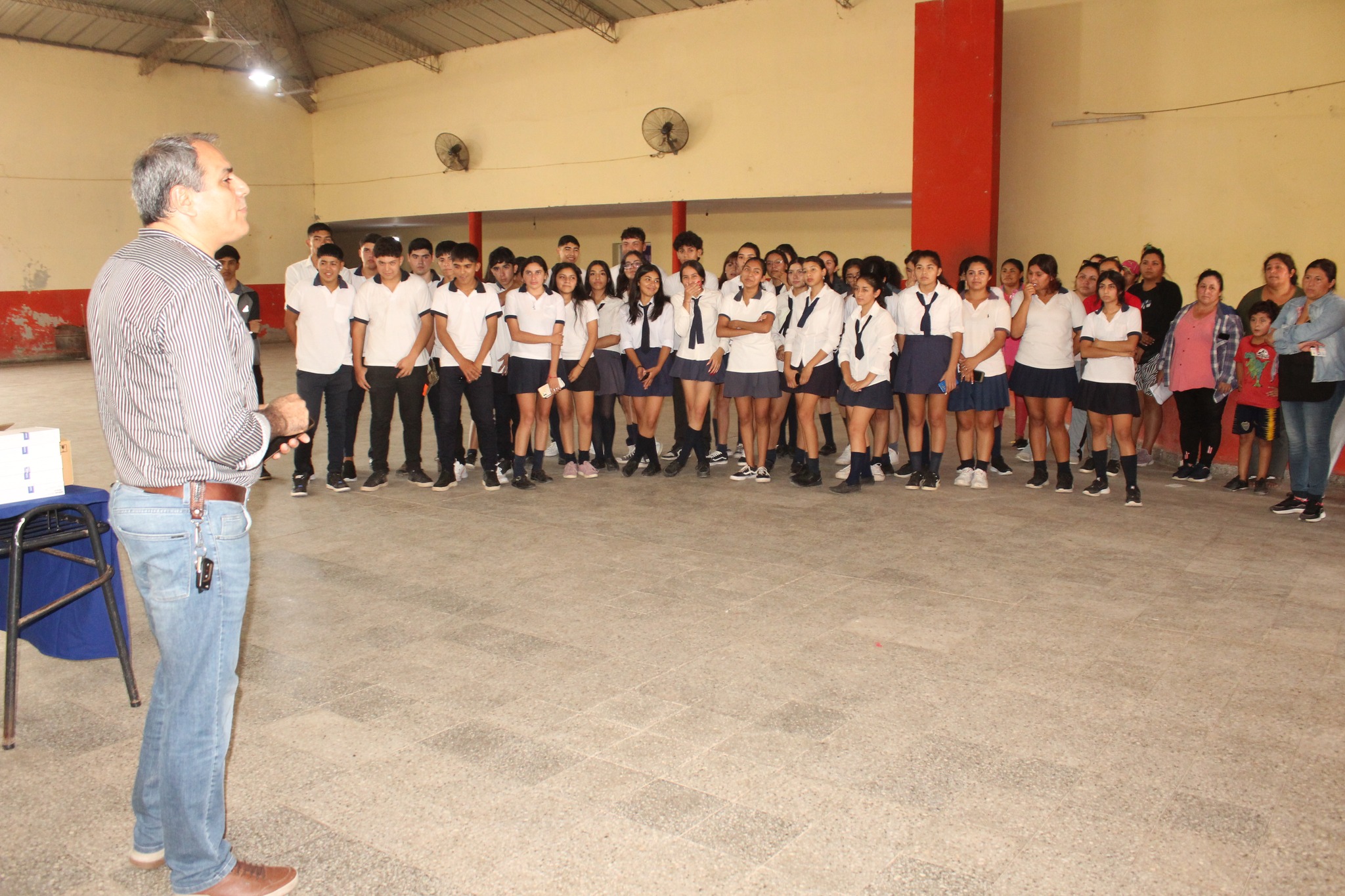 Además del jefe de gobierno municipal, la ceremonia de entrega se desarrolló con la participación de la rectora del establecimiento educativo, Claudia Moyano, quien estuvo acompañad por docentes, alumnos y padres.