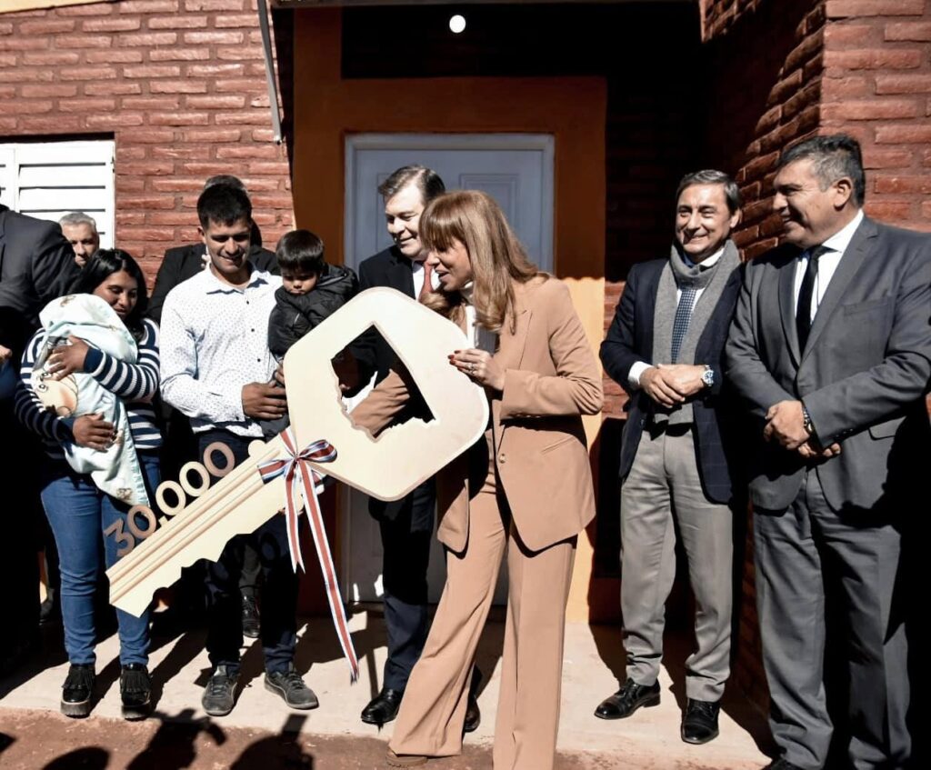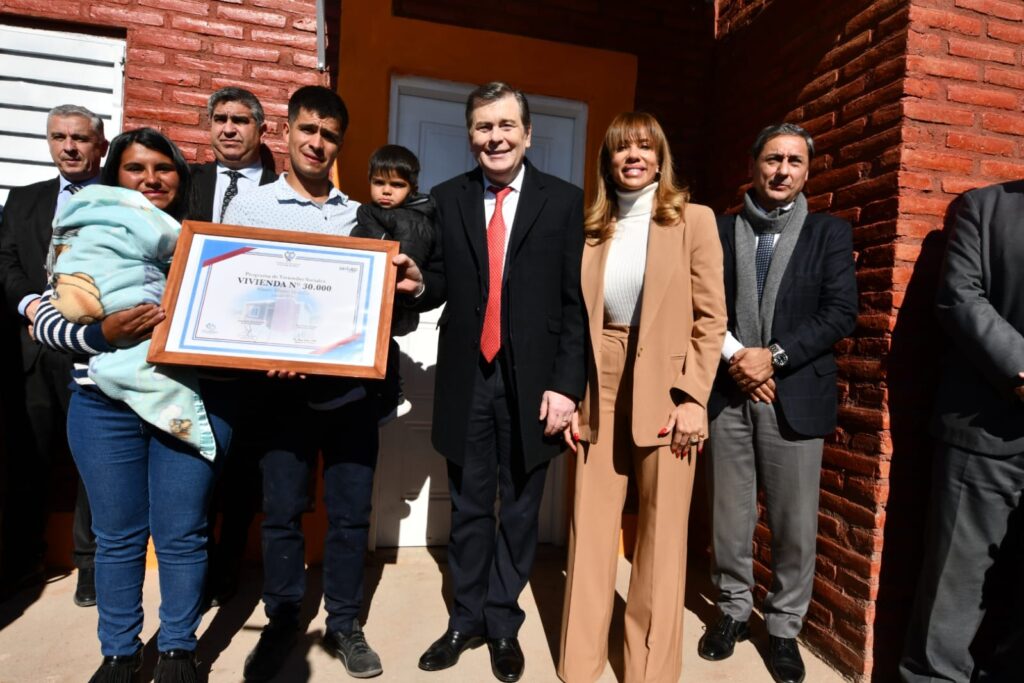 El gobernador Gerardo Zamora realizó este lunes la entrega de la Vivienda Social Nº 30.000. Fue en el domicilio de Mauro Alberto Mansilla, en el paraje El Tasial, Dpto. Choya, donde también estuvo la senadora Claudia de Zamora, quien impulsó en el año diciembre de 2013 -durante su período como mandataria provincial- el programa mediante el cual se mejoró la calidad de vida de familias en todo el territorio santiagueño con la entrega de unidades habitacionales completamente amobladas, gratuitas y financiadas en un ciento por ciento por el Gobierno de Santiago del Estero.
