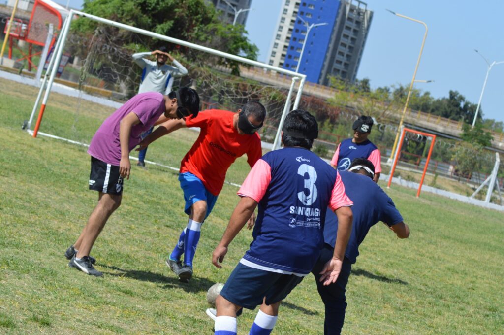 En la segunda parada, realizaron una actividad de recreación en el predio de Ciencias Económicas, que consistió en un partido con el equipo de futbol de ciegos del U.C.A.S.E que concluyó con entrevistas a los jugadores profesionales del equipo. El Encuentro estuvo a cargo de Iván Figueroa (bicampeón mundial con Los Murciélagos) y el D.T del equipo Prof. Facundo Fischer.