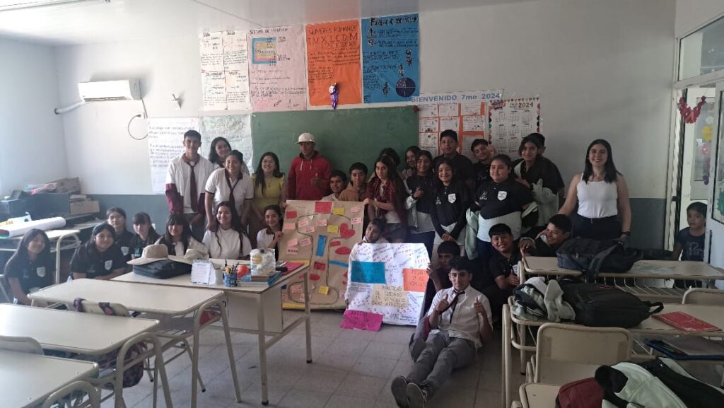 La primera se llevó adelante con cursos de 1° a 5° año de la Escuela Secundaria, Agrupamiento N°86.063 donde se abordaron las temáticas “Prácticas de cuidado en relación a las sexualidades” (1° y 2° año); “Vínculos saludables para deconstruir el amor romántico en las relaciones de noviazgo” (3° año); “El valor de la afectividad” (4° año) y “Los métodos de barrera y las ITS” (5°año).
