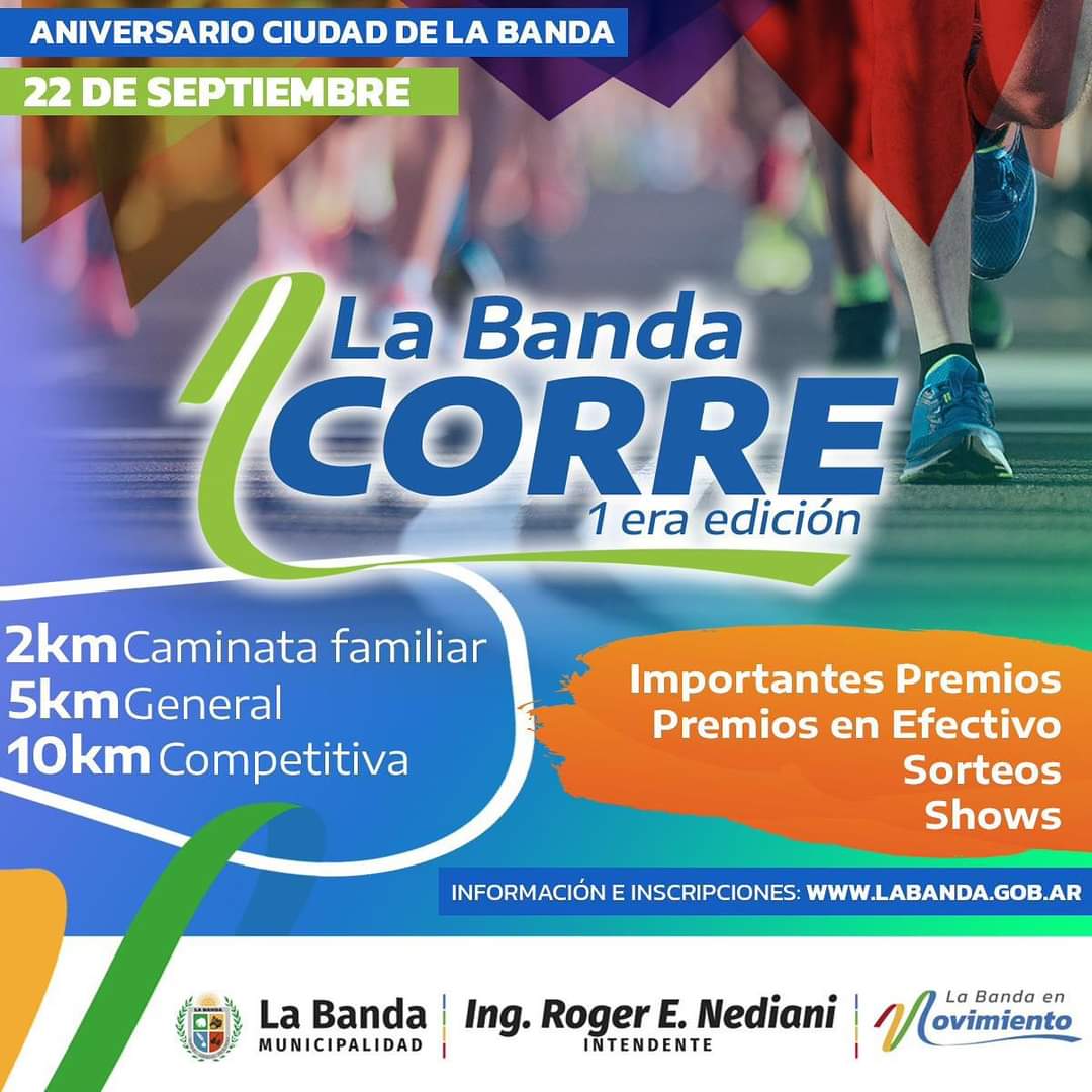 Desde la Municipalidad de La Banda se informó que continuarán abiertas hasta el jueves 19 las inscripciones para participar de la “1° Edición de la Maratón La Banda Corre” que se llevará a cabo el próximo domingo 22 de septiembre, en el marco de los festejos por un nuevo aniversario de la ciudad.