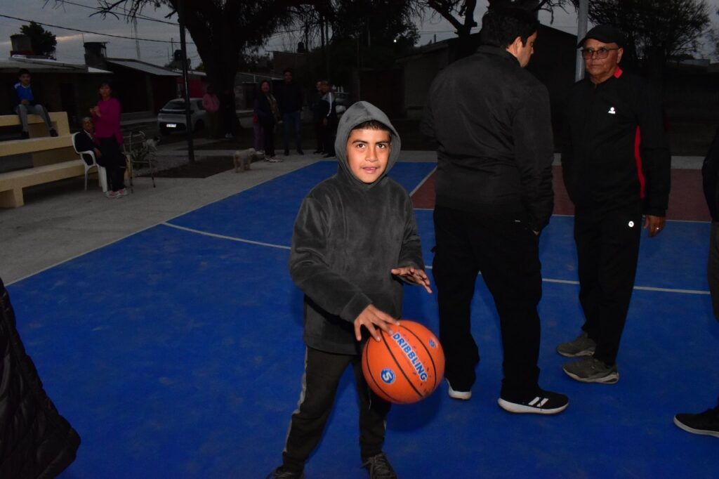 El espacio cuenta con un playón para la práctica de básquet con sus correspondientes veredas, platea, parquizado, luminarias y los elementos para que los niños de la zona puedan disfrutar de esta nueva plazoleta.