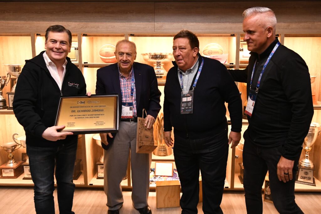 Por su parte, Borro le entregó a Zamora una plaqueta de reconocimiento y Muratore le obsequió un ejemplar del libro “Una vida por el básquet”.