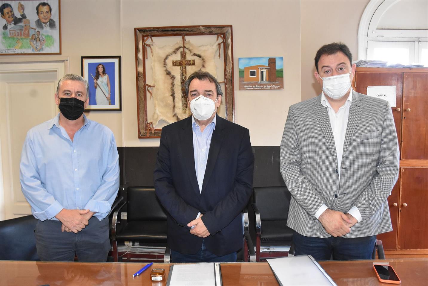 La firma se realizó entre el ministro de Desarrollo, Dr. Ángel Niccolai, acompañado por el subsecretario de Promoción Humana, Arq. Osvaldo Fernández y el intendente de Loreto, José Luis Artaza.