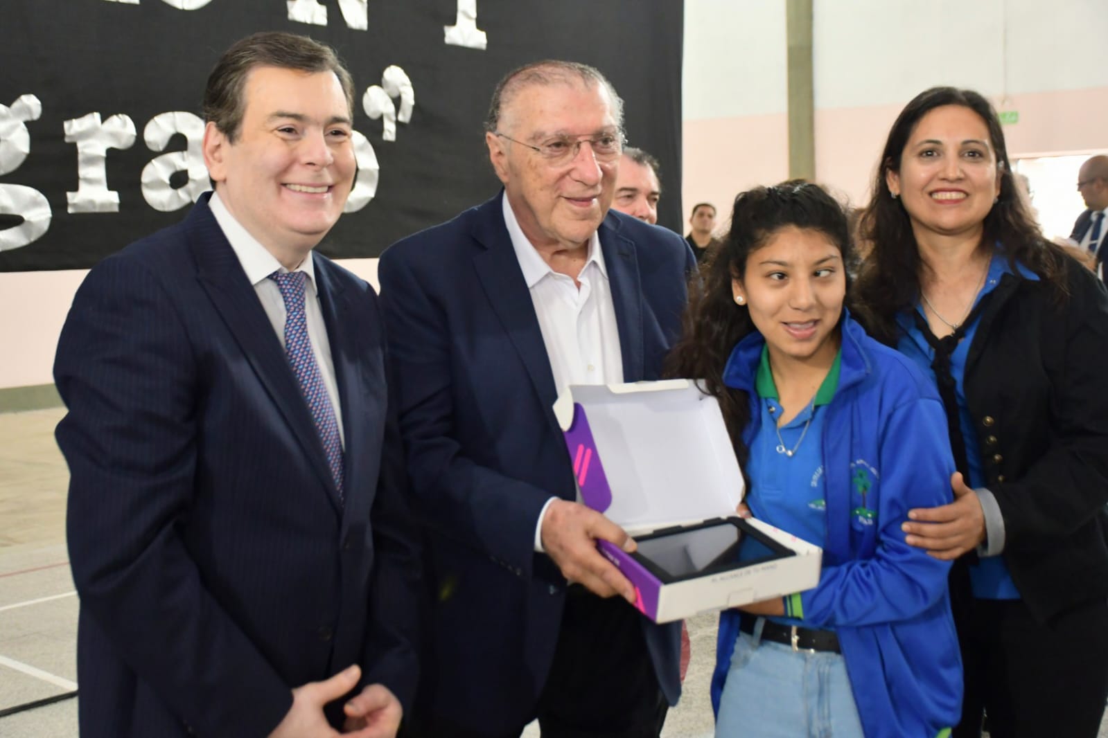 El acto central se realizó en el renovado salón de usos múltiples de la Escuela de Comercio, donde además se hizo la entrega simbólica de tablets del programa “Conectados con vos” para 80 alumnos del Centro de Educación Integral “Hermana María Zaninelli” y subsidios a microemprendedores del Frías, Laprida y Villa La Punta, a través del programa Santiago Productivo.