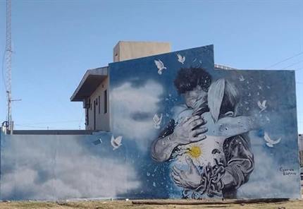 El reconocido muralista argentino Germán Legrand dejó su huella nuevamente en la ciudad de Bandera, donde fue convocado para recuperar la obra de su autoría titulada “Abrazo a la libertad”.