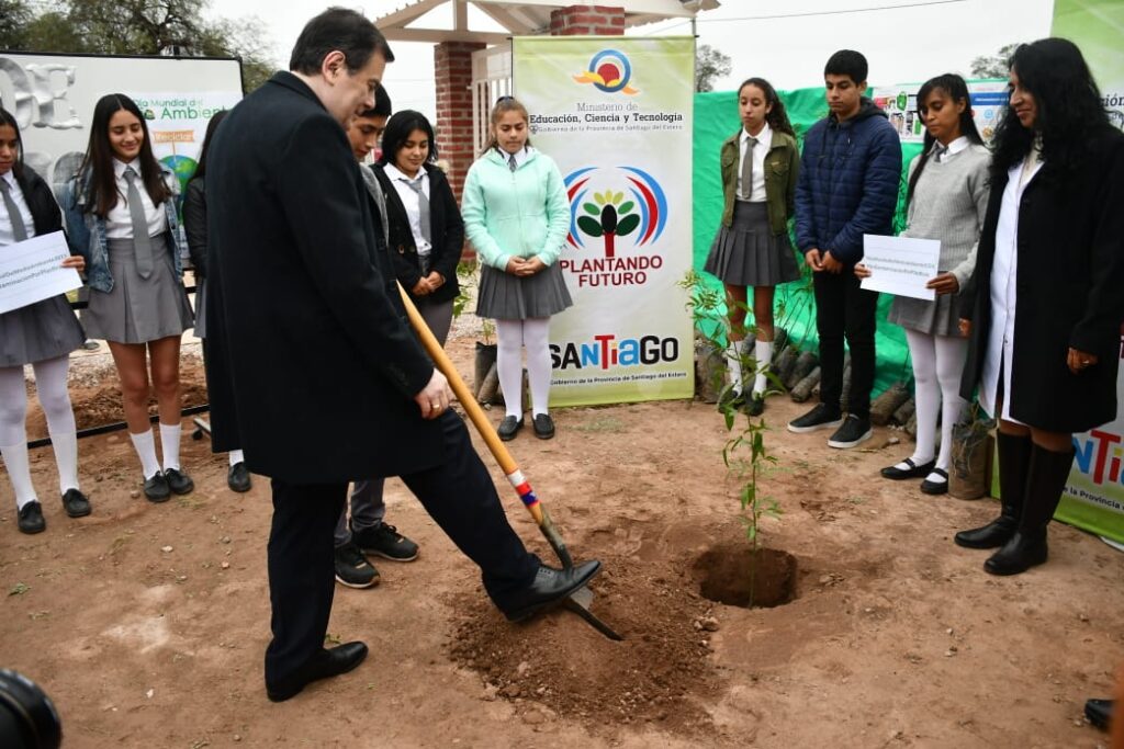 Previo a la ceremonia se colocó un árbol en el patio de entrada, como parte del programa provincial Plantando Futuro y en coincidencia con el Día Mundial del Medio Ambiente.