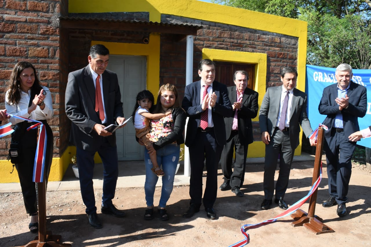 Junto con el comisionado municipal de El Mojón, Mario Verón, y el intendente de Nueva Esperanza, Arnaldo Cazazola, las autoridades iniciaron su recorrido por esta localidad en la casa de Lidia Díaz, en el barrio Matadero, donde se hizo el corte de cintas y la entrega simbólica de las viviendas ejecutadas por la comuna con fondos aportados por la provincia a través del Ministerio de Desarrollo Social.