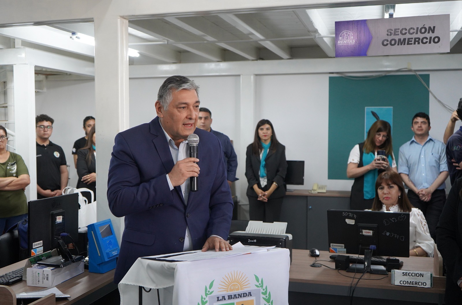 El Intendente de la ciudad de La Banda, Ing. Roger Elías Nediani presidió la inauguración de la remodelación y modernización de la Dirección de Rentas del municipio. Acompañado por el secretario de Economía, Javier Alexandro, el director de Rentas Municipal Douglas Olivera, y demás funcionarios del gabinete municipal.