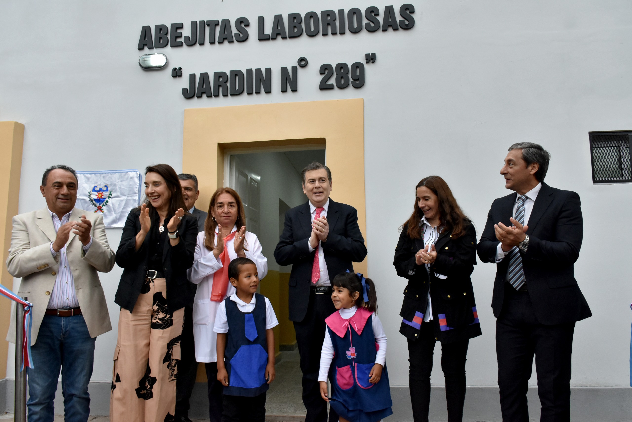 El recorrido fue realizado junto con el vicegobernador Carlos Silva Neder y los ministros de Educación, Mariela Nassif; de Obras Públicas, Aldo Hid, y de Desarrollo Social, Ángel Niccolai, junto con la presidente del Consejo General de Educación, María Elena Herrera, quienes fueron recibidos por el comisionado municipal de Estación Simbolar, Omar Alderete.