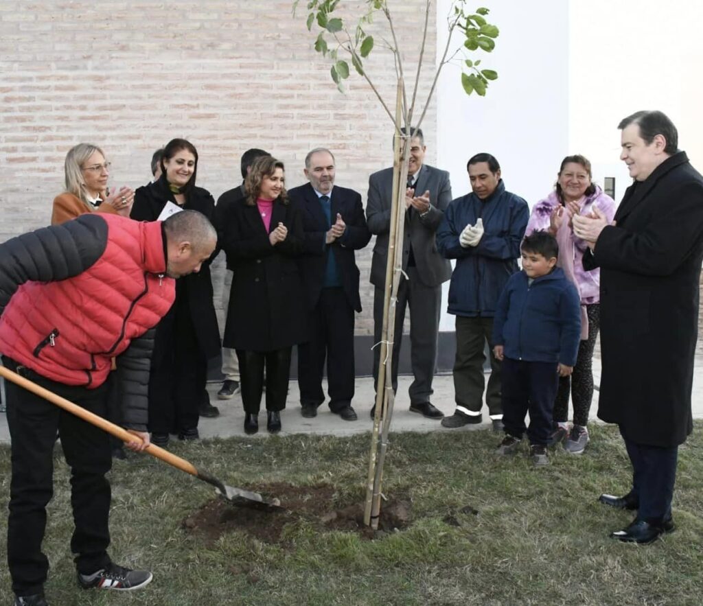 Previo al corte de cintas se realizó la plantación de un ejemplar de lapacho, como parte de la campaña de arbolado que impulsa la provincia junto con la Municipalidad de la Capital.