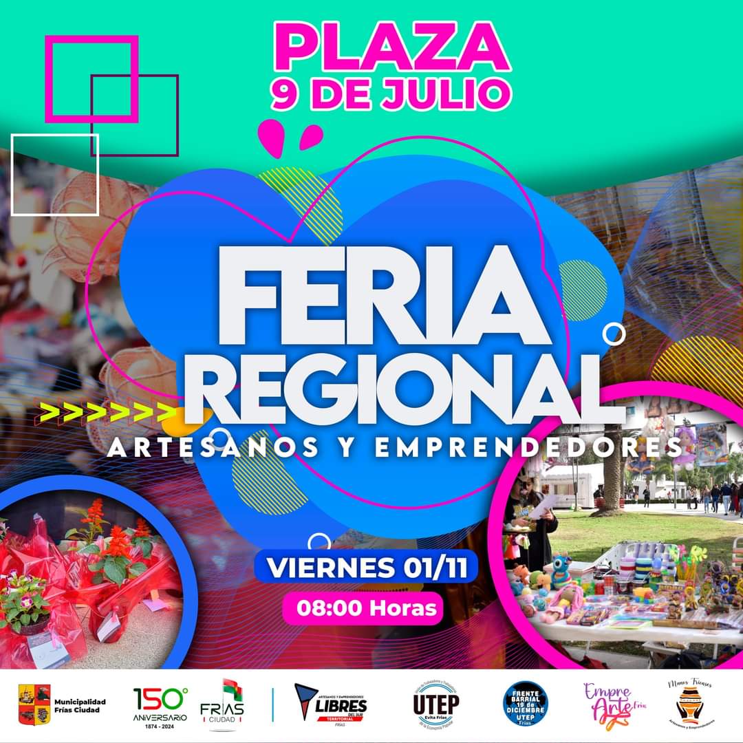 Este viernes 1 de Noviembre desde las 08 se realizará una nueva feria social de artesanos y emprendedores en la plaza 9 de Julio de la ciudad de Frías.