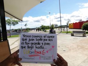 Según relató Juan a Noticias del Estero “la idea se me ocurrió cuando vi que uno de mis contactos hizo un cartelito parecido en un lugar de México para su novia. Como yo quería hacerle un regalo original a la mía, le pregunté si podía hacer uno a mí nombre pero con una frase que yo elija, y me dijo que no había problema. La foto me gustó tanto que me pregunté porque no probar con gente de otros países y al contactar a contactos a través de un grupo de Facebook, muchos me ayudaron”.