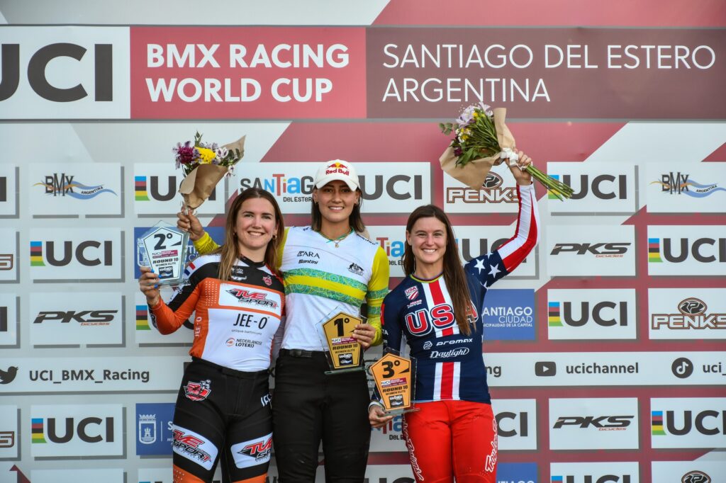 En elite, la victoria se llevó la australiana Saya Sakakibara, seguida por Merel Smulders de Países Bajos, y de Estados Unidos, Alise Willoughby.