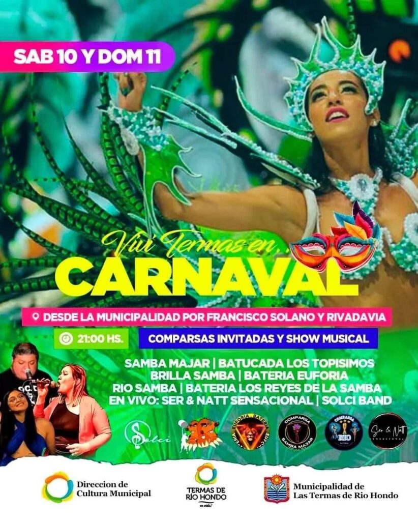Con la participación de comparsas y show musical en vivo se realizará este sábado 10 y domingo 11, el evento “Viví Las Termas en Carnaval” organizado por la Municipalidad de Las Termas de Río Hondo para el disfrute de vecinos y turistas que cada fin de semana se congregan para ser parte de las actividades de verano.