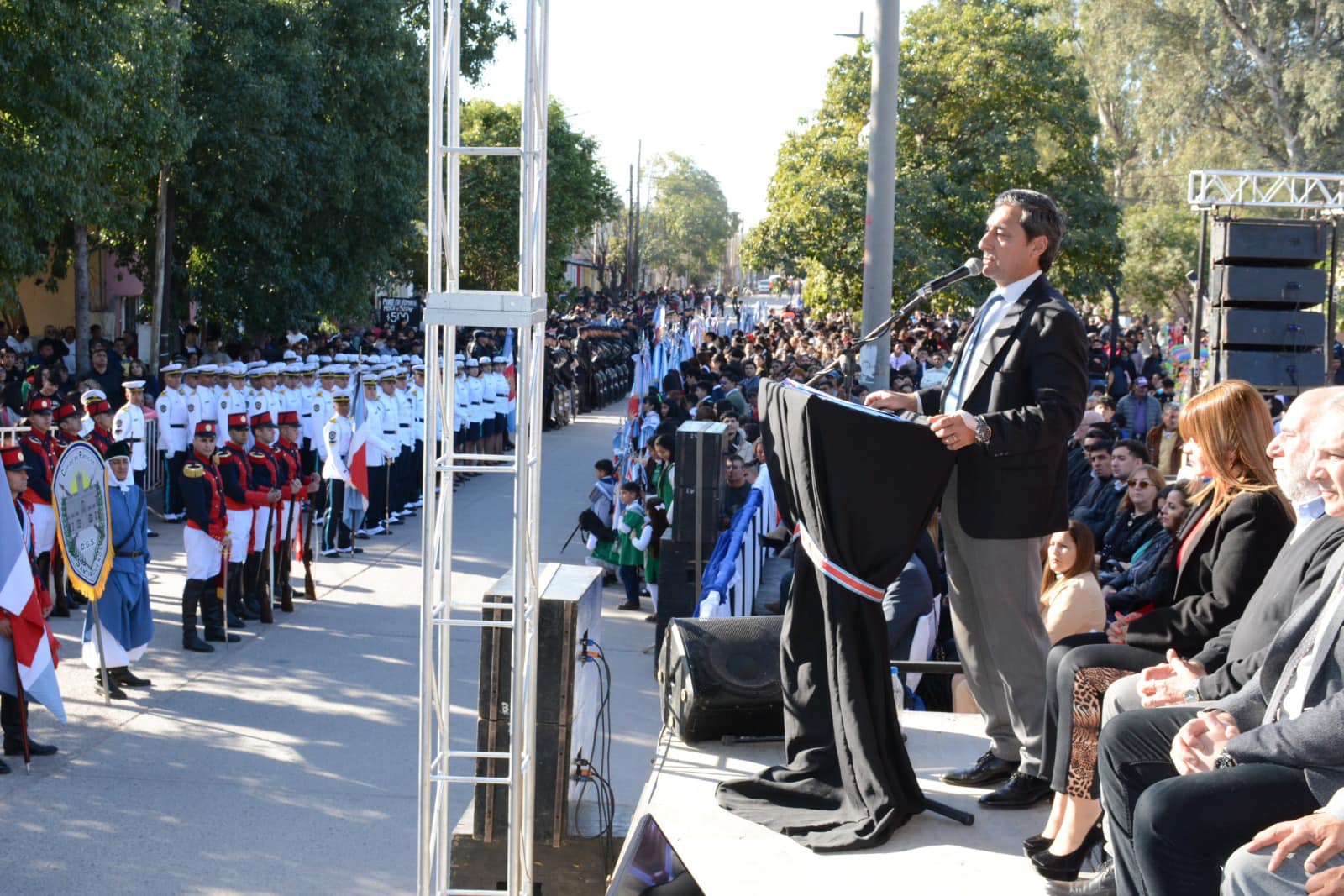 La ceremonia se desarrolló en la plaza San Martín, con el intendente Ramón González como anfitrión, además del ministro de Gobierno, Marcelo Barbur; el senador José Emilio Neder y la diputada nacional Estela Neder, entre otras autoridades.