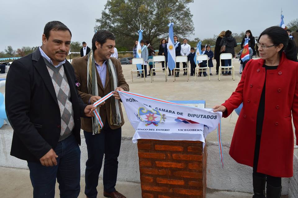 En representación de la gobernadora Claudia de Zamora, el ministro realizó el corte de cintas de importantes obras, junto con el comisionado municipal Daniel Gómez, y vecinos de estas comunidades del departamento Banda.